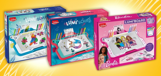 Az új kiegészítők minden korábbi Lumi Board alapkészlettel kompatibilisek – legyen az a klasszikus, a hableányos vagy a Barbie verzió. Akárcsak a többi MAPED CREATIV készlet, a Lumi Board nemcsak szórakoztató, hanem nagyszerű fejlesztőjáték is, amely támogatja a finommotorika és a koncentráció fejlődését. Tökéletes ajándékötlet szülinapra vagy ünnepekre - tudj meg többet a készletekről a legújabb MAPED CREATIV karácsonyi katalógusunkból!