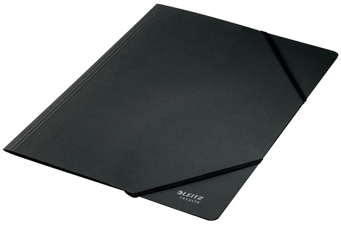 Gumis mappa, karton, A4, LEITZ "Recycle", fekete