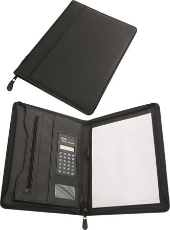 Konferencia mappa, A4, műbőr, számológéppel, fekete