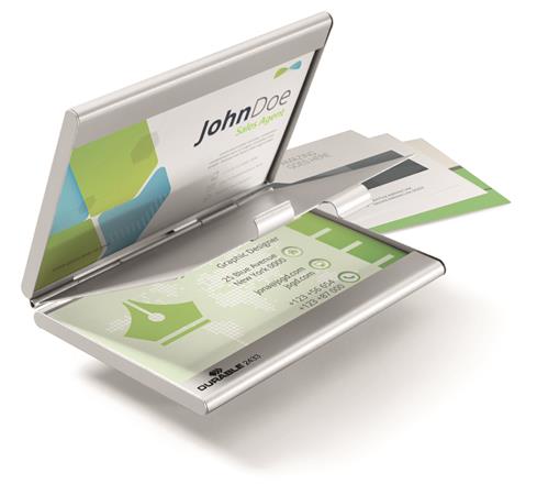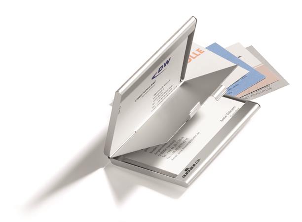 Névjegykártyatartó tárca, fém, 20 db-os, DURABLE "CARD BOX DUO", ezüst