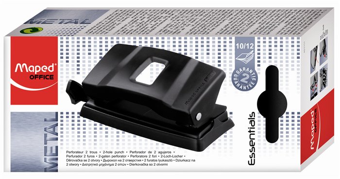 Lyukasztó, kétlyukú, 12 lap, fém, MAPED "Essentials 12", fekete