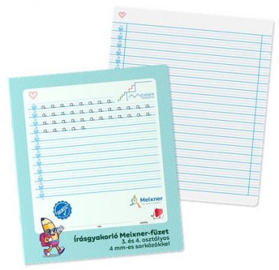 Írás gyakorló füzet a 3. és 4. osztályosok számára, amely a Meixner Alapítvány együttműködésével és ajánlásával jött létre. Speciális vonalazású és kialakítású füzet alkalmas a Meixner-féle írás tanulás elsajátítására és gyakorlására.