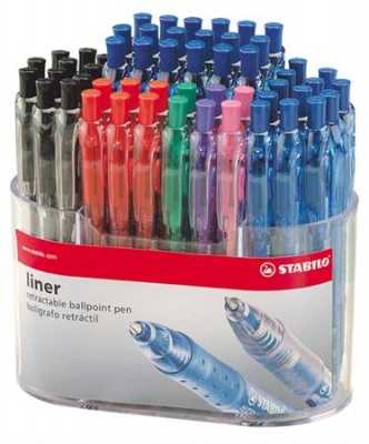 - display tartalma: 3 db zöld, 3 db lila, 3 db rózsaszín, 6 db piros, 18 db fekete, 22 db kék színű "Liner 308" golyóstoll