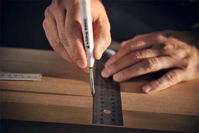 -hosszú (42 mm) és vékony (5,5 mm) hegyfoglalatnak köszönhetően a ceruza még a keskeny vagy más nehezen hozzáférhető helyeken is használható, pl. furatlyukak vagy vágó élek jelölése esetén
