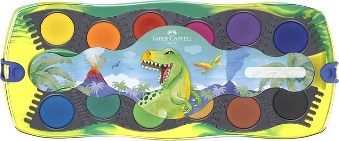 -a készlet tartalma: 12 különböző színű vízfesték, 1 tubus fehér tempera + dinoszaurusz matrica