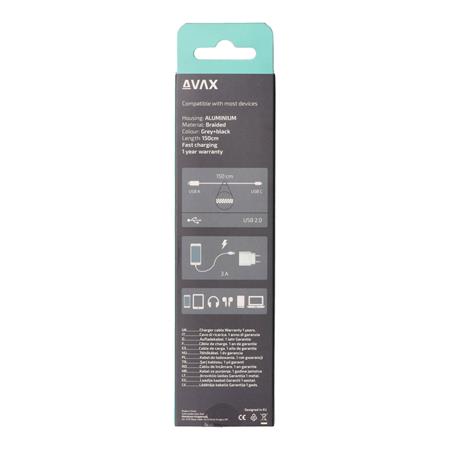 Töltőkábel, USB-A - USB-C, 1,5 m, AVAX "CB301G", acélszürke