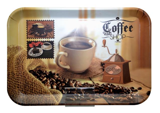 KezdőlapÜzemeltetésKonyhai termékekEgyéb konyhai felszerelésekTálca, szögletes, műanyag, kávéház mintás, 21x14 cm