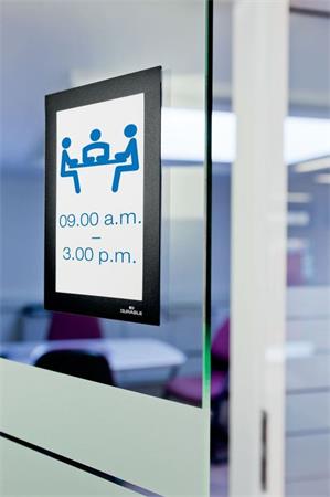 A DURAFRAME® segítségével profin és kényelmesen helyezhetjük ki dokumentumainkat bármilyen sima, kemény felületre, például ablakra, iratszekrényre vagy ajtóra.