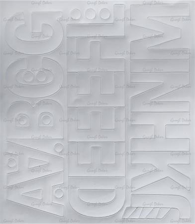 Öntapadós vinil tapétából hőpréssel stancolt betűlap.
