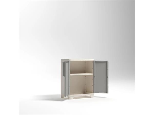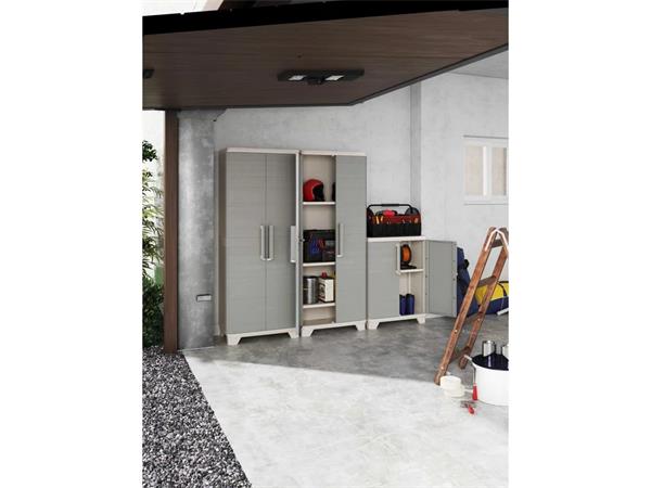 Szerszámtároló szekrény, alacsony, műanyag, KETER "Linear Wood", világos/bézs